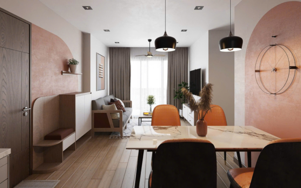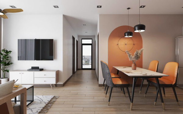 Căn hộ 3 phòng ngủ được thiết kế với bố cục khoa học, tối ưu hóa công năng sử dụng trong từng không gian. Thiết Kế Nội Thất Chung Cư 3 PN với tone màu nâu cam ấm áp kết hợp cùng xám hiện đại tạo nên tổng thể hài hòa, mang đậm dấu ấn cá nhân và gu thẩm mỹ tinh tế.